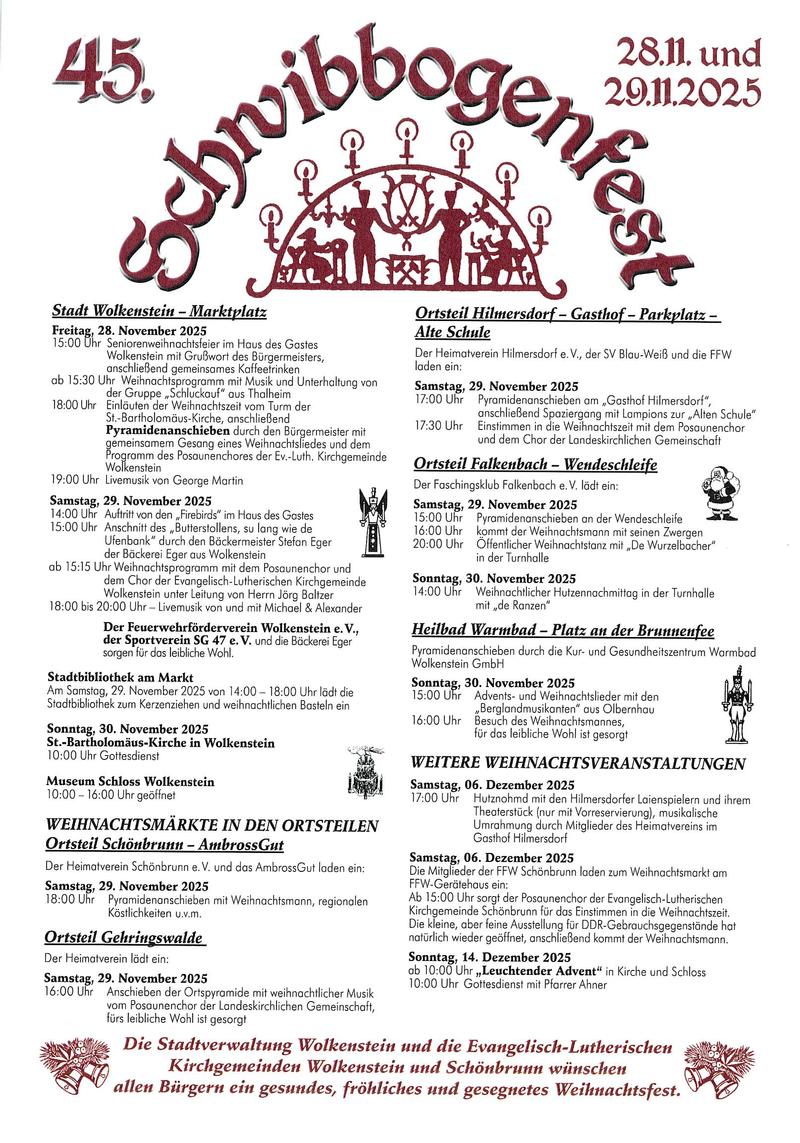 Dies alles ist unsere Heimat. Wir laden Sie, euch ein, eigene Gedanken hier in Wolkenstein mit seinen Ortsteilen Hilmersdorf, Gehringswalde, Heilbad Warmbad, Schönbrunn und Falkenbach einfließen zu lassen. Bei uns kann man wohnen, tätig sein oder beides verknüpfen. Wir sind offen für neue Mitbürgerinnen & Mitbürger. Wir freuen uns über kreative, belebende Ideen.