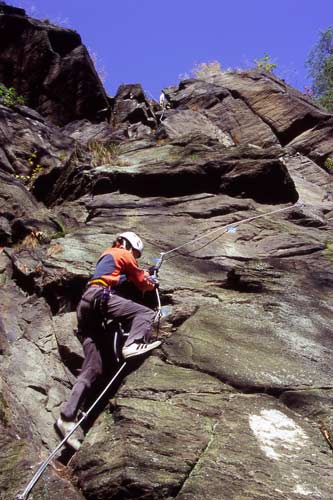 Die steil aufragenden Gneise eignen sich natürlich auch zum Felsenklettern. Seit den 60er Jahren des vorigen Jh. sind diese für den Klettersport von Interesse. Das Gebiet der Klettermassive gliedert sich in zwei Hauptteile. Der Felsen unterhalb der Burg-Schloss-Anlage mit der angrenzenden Wolfsschlucht bietet bis zu 50 m hohe Wände - ebenso die Massive der Wolkensteiner Schweiz (im engeren Sinn) in der Nähe von Floßplatz. Diese bilden einen weiteren Komplex. Neben der Brückenklippe seien Dachwand, Zschopaunadel und DAV-Wand genannt. Nach einer Erweiterung der Klettermöglichkeiten findet man hier Steige unterschiedlicher Schwierigkeitsgrade, einschließlich Routen für Ausbildungszwecke. Zu ausgeschriebenen Terminen bzw. auf Anfrage finden Kletterkurse statt. Die Kletteranlagen werden vom Deutschen Alpenverein e.V., Sektion Chemnitz, gewartet. Deren Benutzung steht allen Bergfreunden offen. Die Benutzung erfolgt auf eigene Gefahr.
